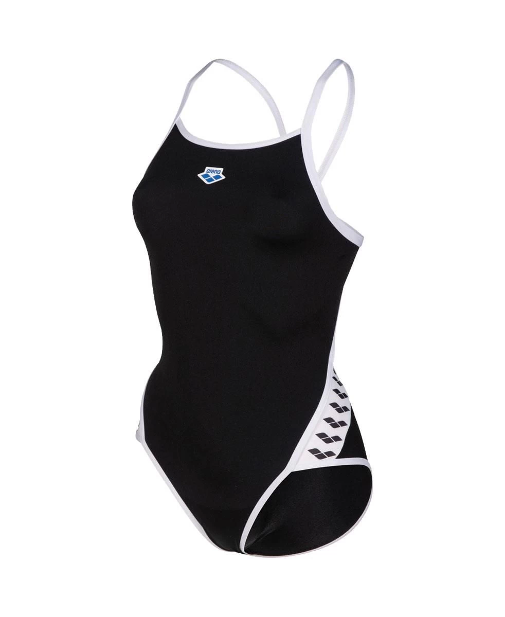 The Arena Icons Superfly back swimsuit in black and white is a great choice for frequent swimmers that require a durable swimsuit.