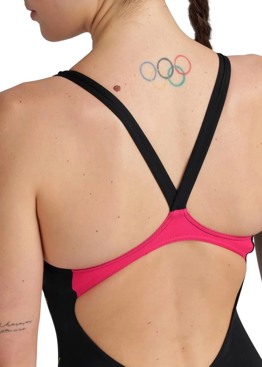 Arena Women’s V Back Graphic swimsuit is the ideal swimsuit for intense training days and regular pool use.