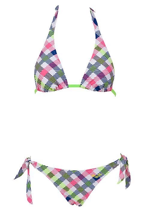 A classic two-piece triangle halterneck style swim bikini from Arena’s summer beachwear collection that will give you an elegant and flattering look on the beach, in the swimming pool or whilst sunbathing.