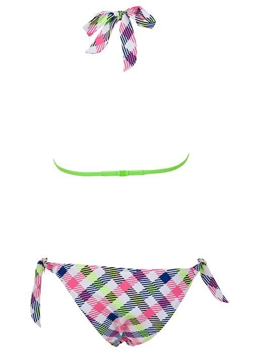 Adjustable neck straps that tie at the back and side ties on briefs ensure that this swim bikini fits you perfectly.