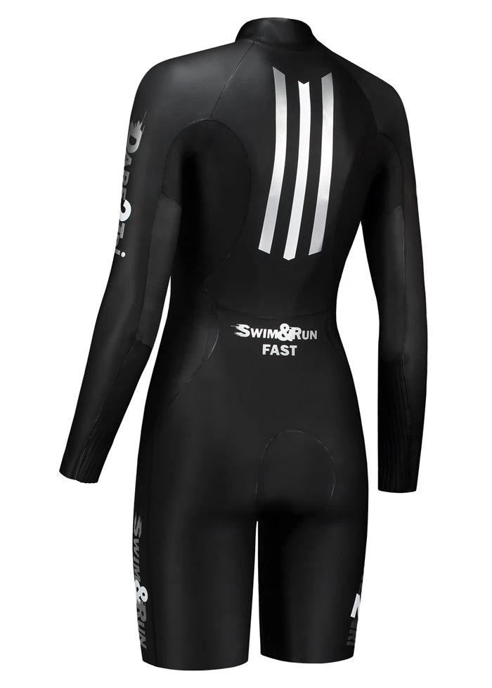 The Women’s Dare2tri SwimRun Fast is a great choice for the serious athlete. Utilising advanced materials such as 0.7mm DuraflexTM under arms construction and 44Cell stability panels. GlideskinTM Technology and AquaGripTM further adds to the improved performance of this wet-suit.
