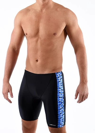 The Mens Dolfin Optik Jammers comes in a refreshing blue sliced panel style print which is both unique and vibrant, this swim jammers are made from Xtra Life Lycra® fabric which provides high quality colour and shape retention properties making it ideal for training, fitness and leisure swimmers!