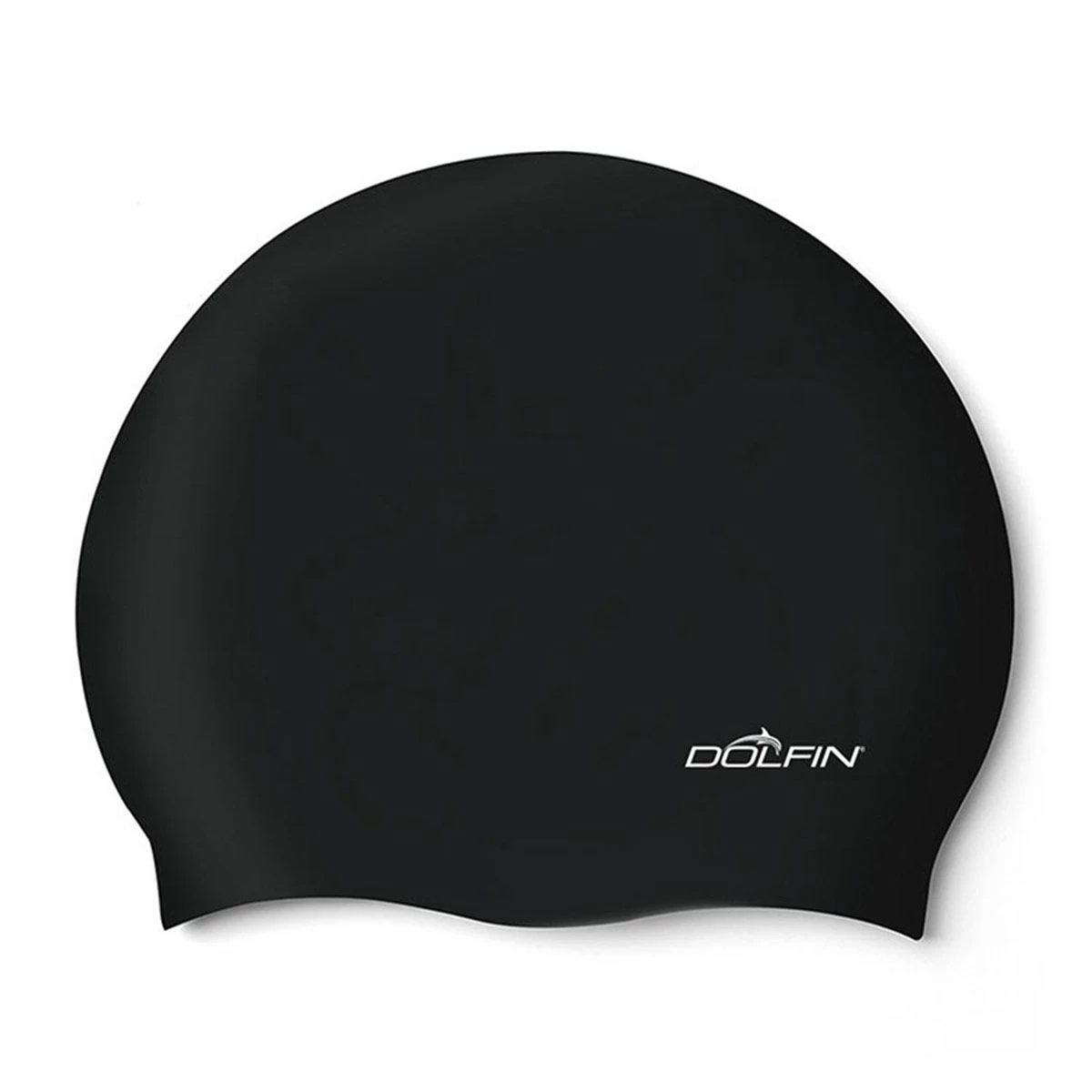 This black silicone swim cap from Dolfin is a one-size-fits-all cap can be used for casual, competition, and training needs.