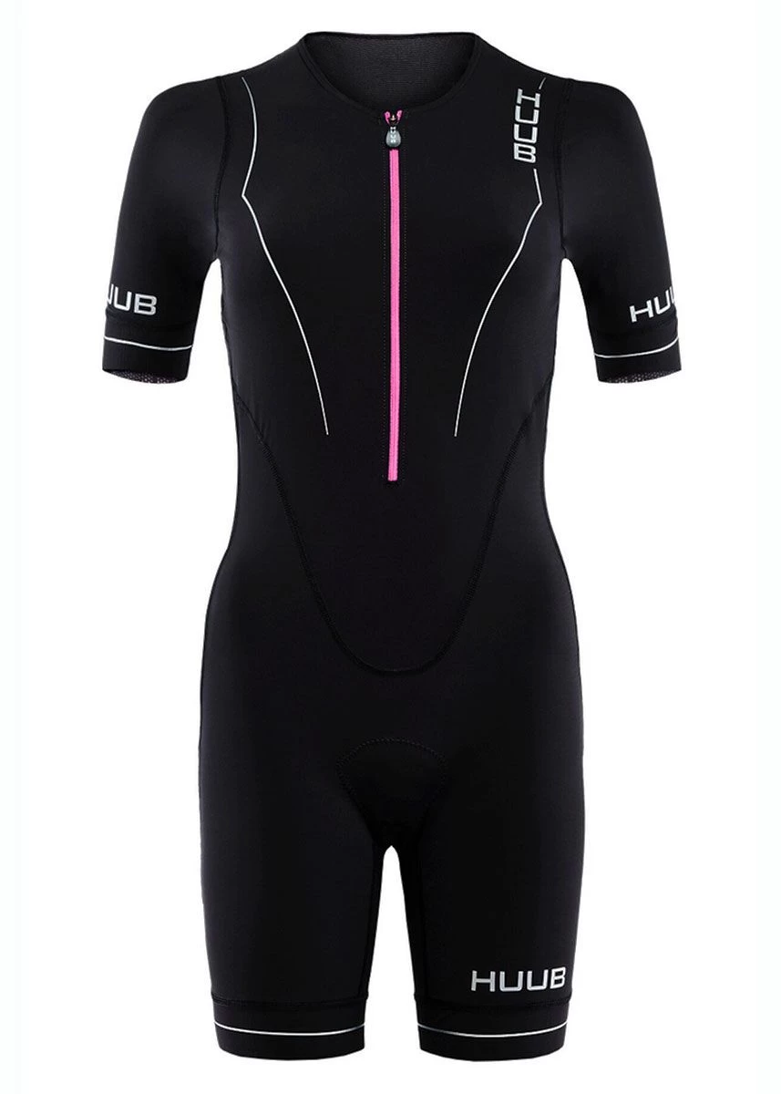 The HUUB Women’s Aura Long Course Tri Suit in black and purple has been designed to be one of the best performing Tri suits on the market. The suit features long course elbow sleeve for aero performance and added UV protection.Â