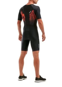 2XU Men’s Perform Full Zip Sleeved Trisuit – Black/Flame Ombre