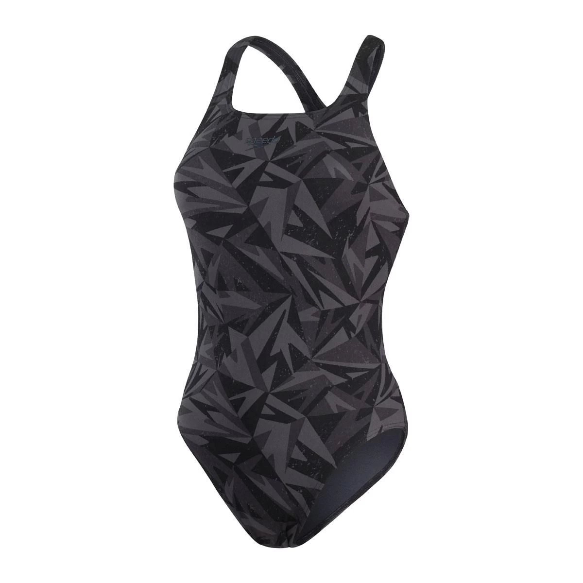 Make a statement in Boom logo prints. Celebrating the Speedo brand, our sporty Hyperboom Medalist swimsuit showcases our iconic Boom logo in a ‘shattered’ print design with striking shades of grey and black.