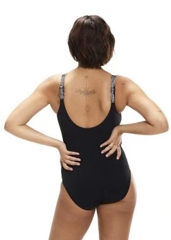 Enhances, flatters and feels good all over. The sporty-looking Speedo Luna Lustre swimsuit features a squared neckline and a flattering scooped back.