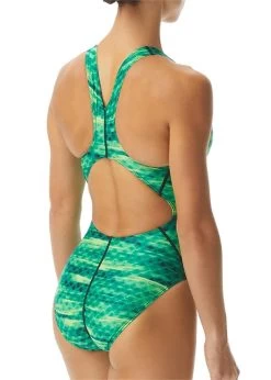 This swimsuit has been made with TYR’s Durafast Lite® fabric which is made with a polyester and spandex construction, utilising high denier poly fiber and innovative circular knit construction to combine the strength and colour fastness of polyester with the comfort of spandex.