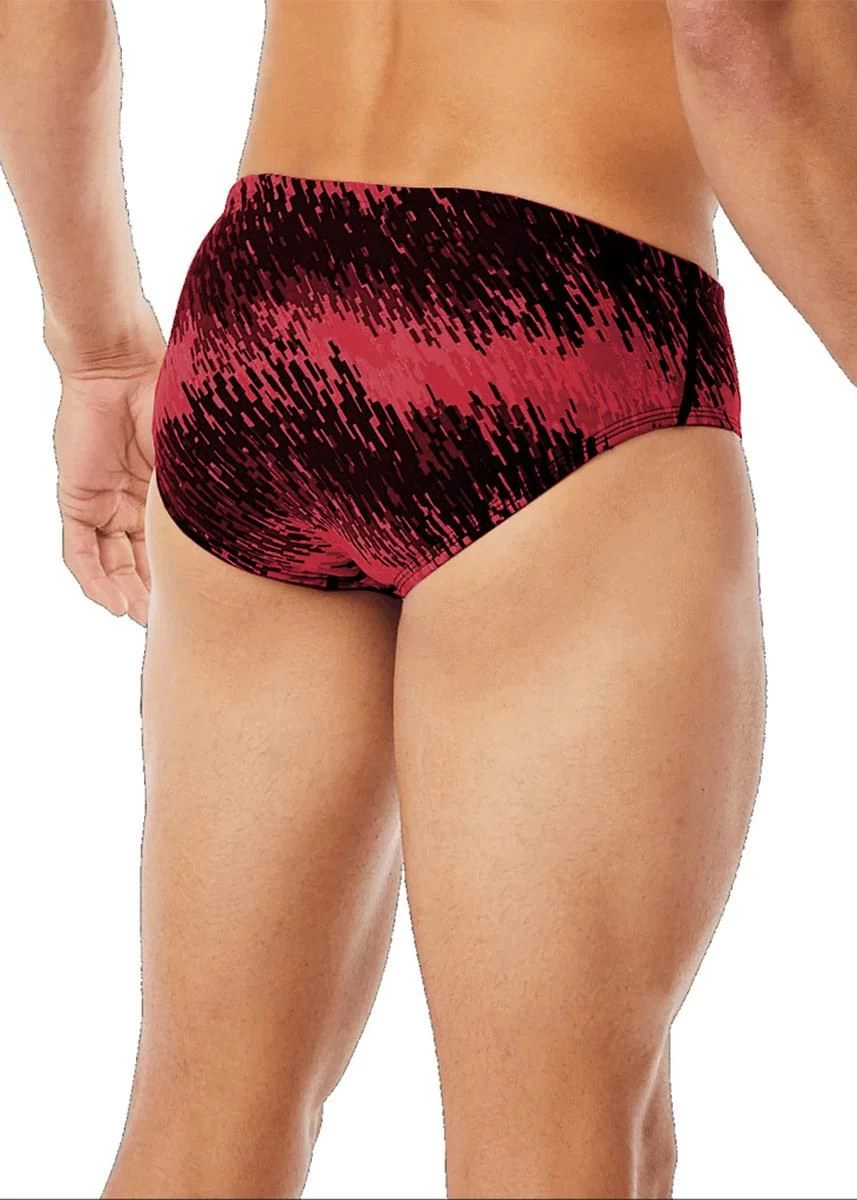 Featuring a fitted brief style, adjustable drawcord waist and bold print, the TYR Perseus racer is ideal for swimmers who want a combination of minimal coverage and comfortable support during every swim.