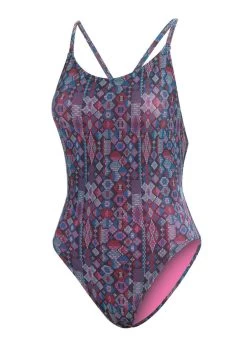 Make a splash at the pool with the new colourful Uglies Revibe Festival Low X-Back swimsuit, featuring an eye-catching print.