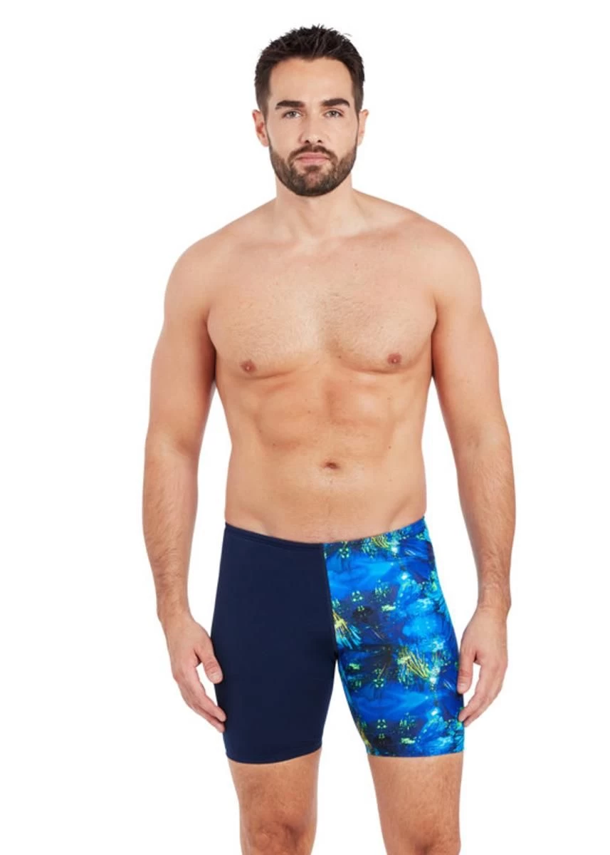 Swim your personal best in the Mens Blitz Mid Jammer. A striking, grafitti inspired all over print, this 39cm leg Mid Jammer is sleek and slim fitting for ultimate performance in the water. Triangle front lining for extra modesty, drawstring for the perfect fit and made from Zoggs 100% chlorine proof Ecolast+™ fabrication.