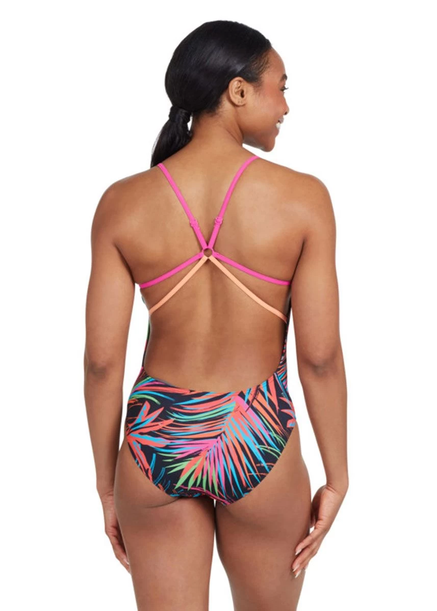 Full of features – this suit is front lined and has adjustable straps too. With a striking and vibrant leaf print, this suit is perfect for summer. 100% chlorine resistant and made with Zoggs eco friendly Ecolast+â„¢ fabrication – you need to get in quick, as this style sells out every season!