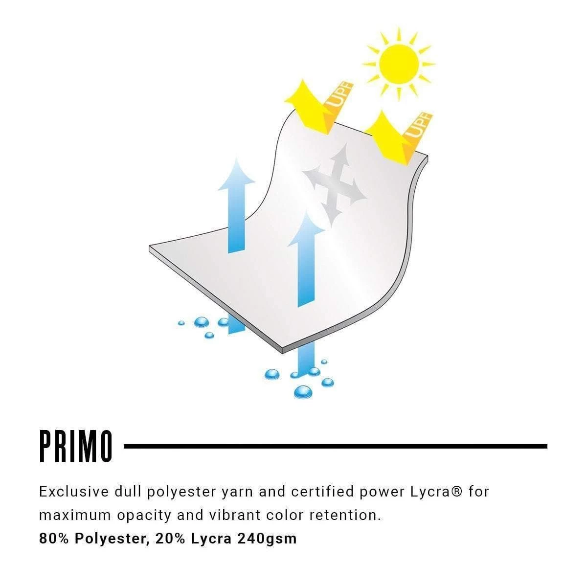 - Sublimated Italian Primo fabric ensures the very best in moisture management, comfort and durability