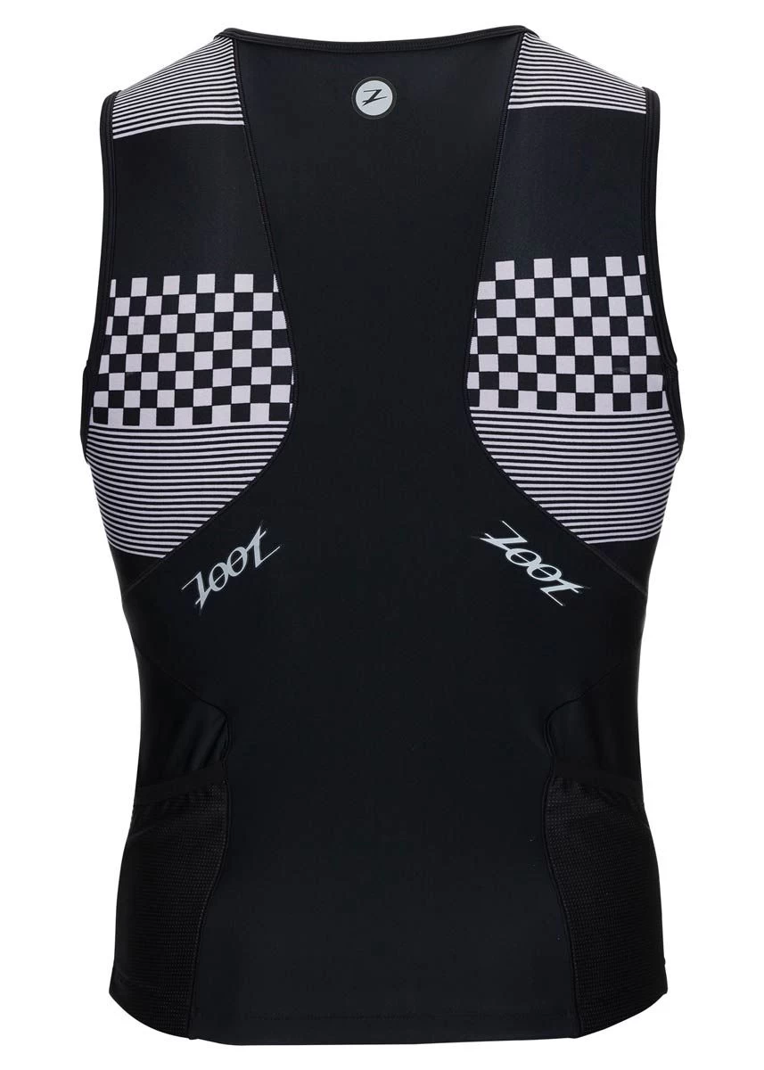The Men’s Zoot silver checkers designed Performance Tri Tank is the most popular triathlon tank from Zoot. The men’s Performance Tri Tank blends essential protection from the sun, next-to-skin comfort, and enhance breathability.