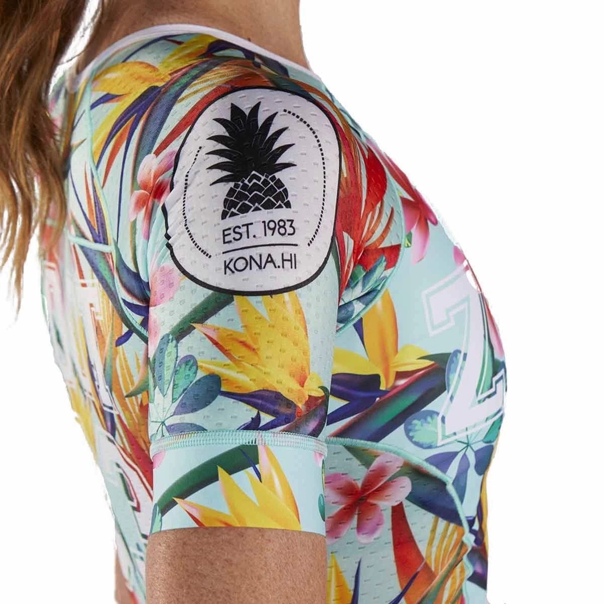 - Aero-cut skinsuit design with textured Aero sleeve fabricÂ