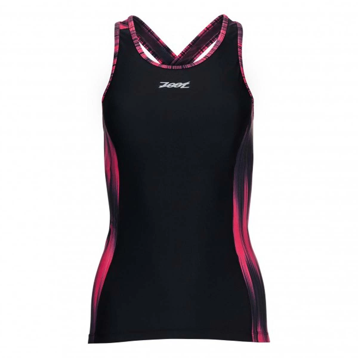 The new Zoot Women’s Performance Tri Crossback Top in a good vibes design is designed for essential support and comfort.