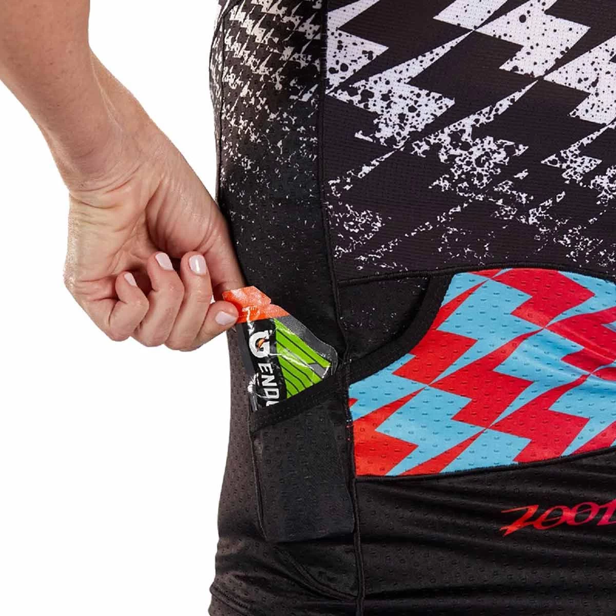 The new Zoot Women’s Ultra Tri Short Sleeve Aero Jersey in ultra 19 design is leading the way in technology advancements, Zoot is using carbon fabric in the Jersey for the most cutting edge performance benefits. Carbon fabric reduces heat build-up to help regulate body temperature during intense exercise.